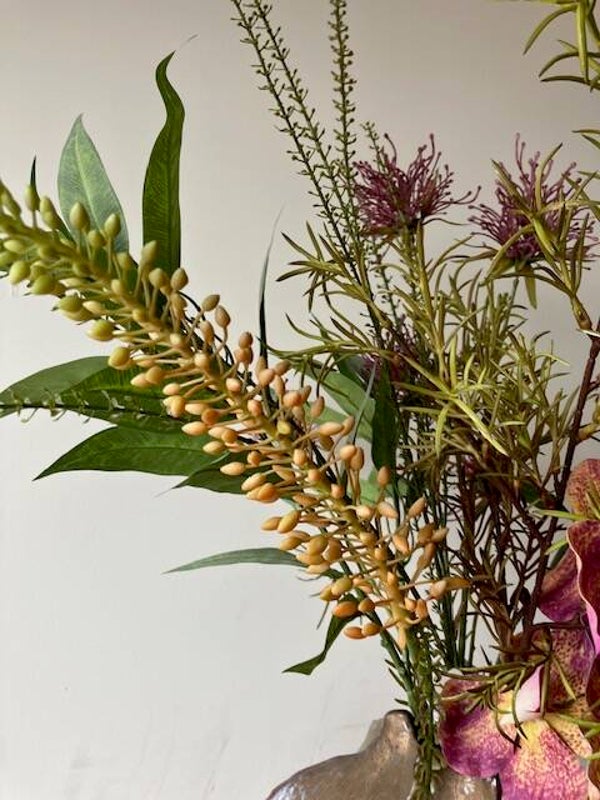 Weer zo'n mooi boeket! Dit boeket heeft een grote orchidee met warme titnen die mooi combineert met de andere stijlvolle bloemen.